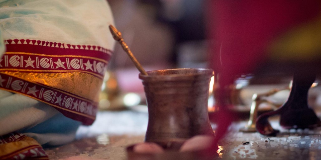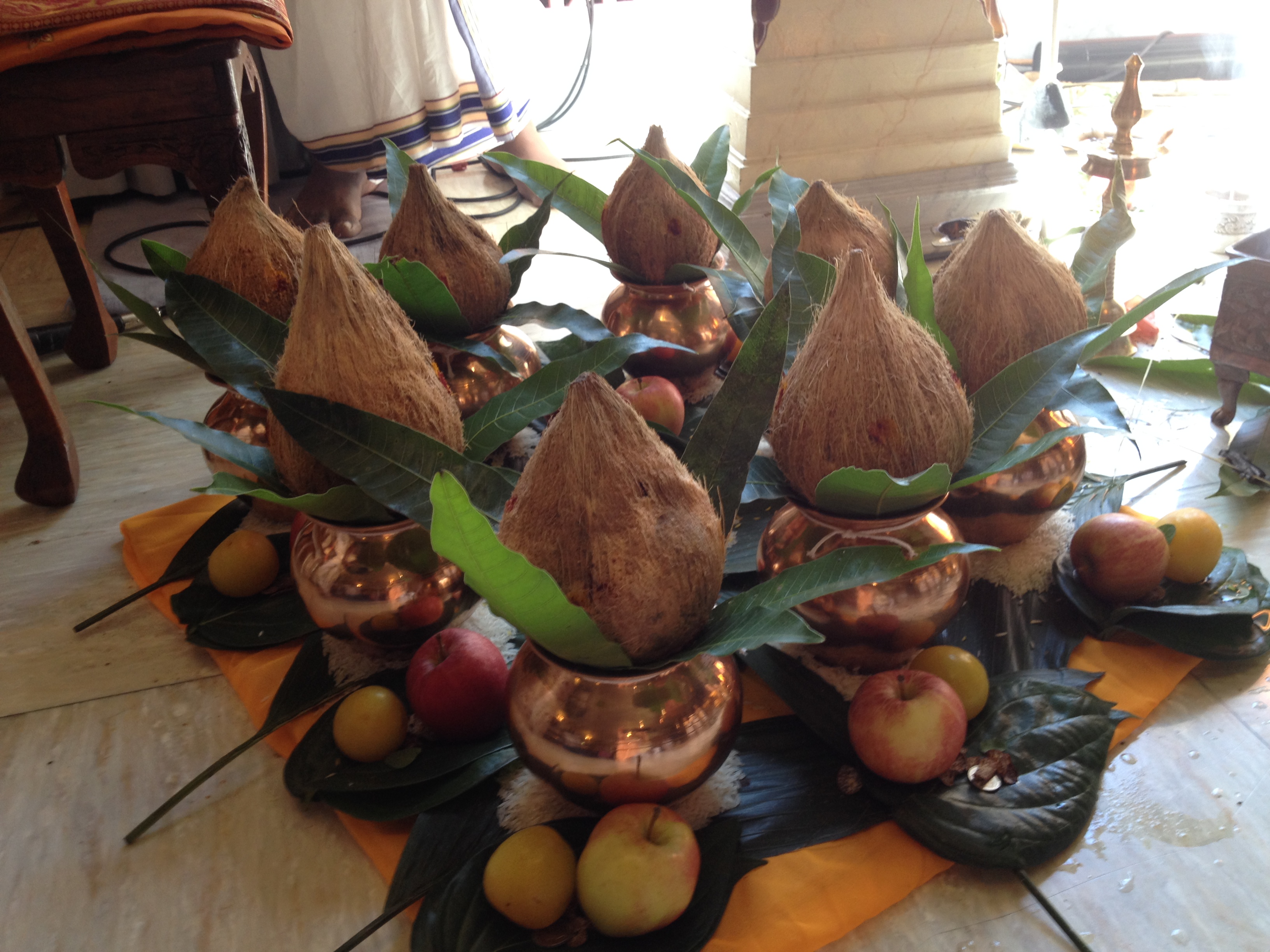 Als Vorbereitung zur Geburt des Kindes wird ein Mangala-Homa durchgeführt.